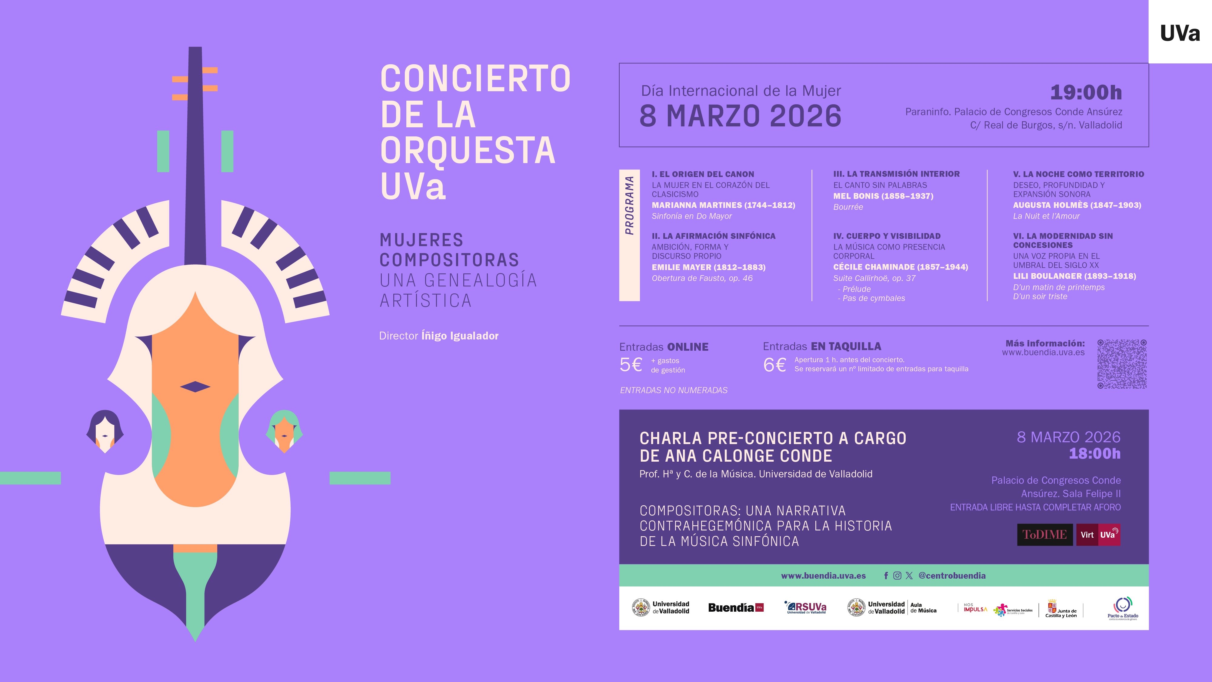 La Orquesta UVa se une a las actividades programadas por la Universidad de Valladolid a través de la Unidad de Igualdad con motivo del Día Internacional de la Mujer que se conmemora el próximo 8 de marzo.